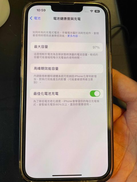 公司備用機少用,更換過整新機,所以序號與盒裝不同,電池97%