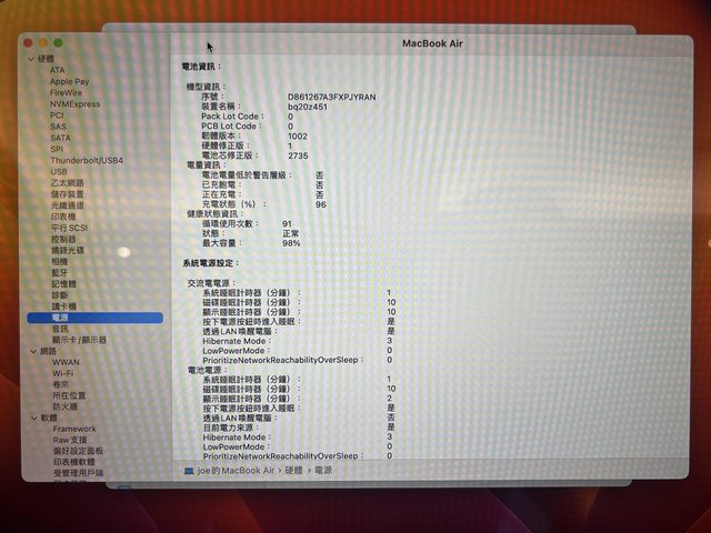 外觀無大傷 9.5新 電池最大容量98% 循環次數91