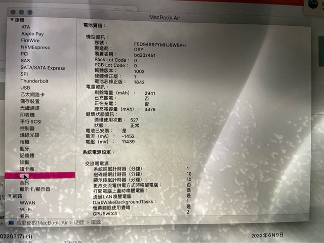 已過保 充電循環次數:527次
