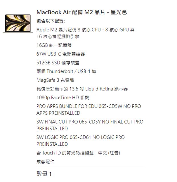 標題[販售] 高雄 MacBook Air M2 16G/512G 13吋 星光