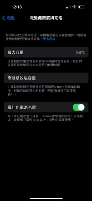 電池健康度96%