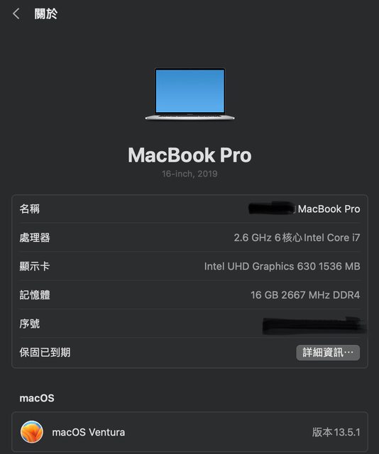標題[販售] 雙北 MacBook Pro 16" / i7 /16/512