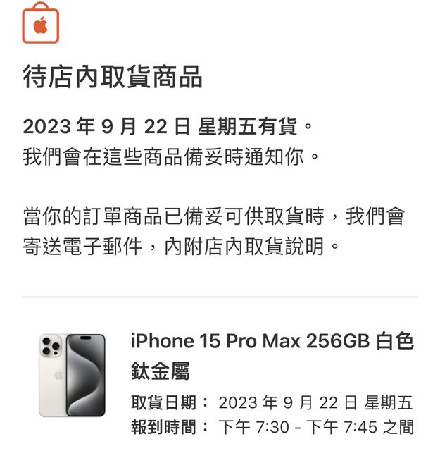 iPhone15 Pro Max 256G 白色(9/22傍晚直營店取)