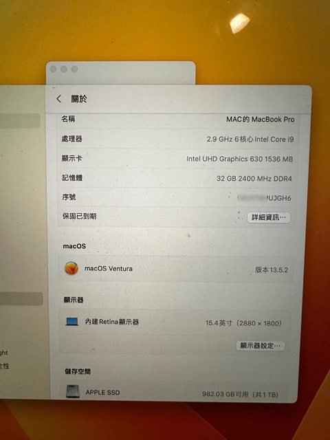標題[販售] 桃園 MacBookPro 15" i9 32G 1TB 2018