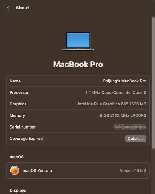 標題[販售] 台中Macbook Pro 13" 2020 i5 8/256