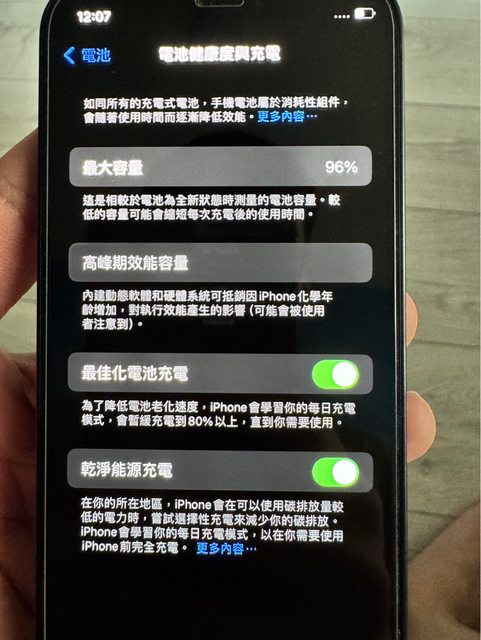 目前電池健康度96%,正常使用痕跡