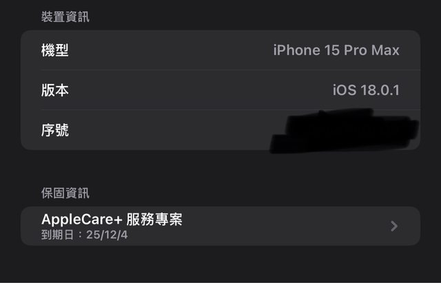 Apple Care + 保固到 2025/12/04