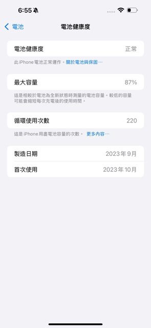 電池健康度87%,循環使用次數 220