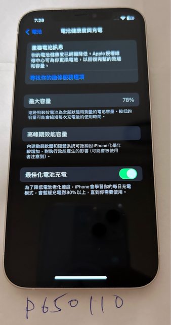 。電池健康度78%