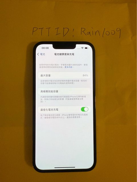 1.電池健康度84%,功能正常,無維修過。