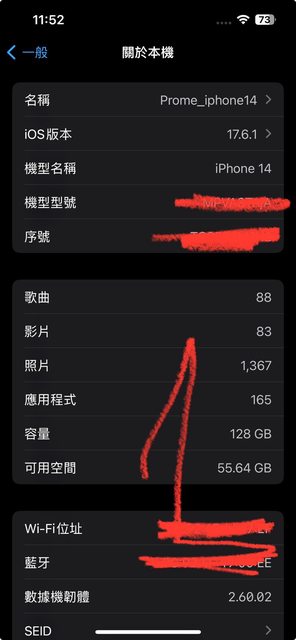[型號] iPhone 14 [規格] 128GB 紅 電池84% [保固]已過保,使用狀況良好 [盒裝配件] 附盒、充電線(c to lighting)、贈保護殼(原來舊的)、保護貼 [售價]NTD 12000元 [交易方式/地點]台北捷運奇岩站,捷運北投站(ATM領現或網銀轉帳) [連絡方式] 站內信 附上機器照片如下