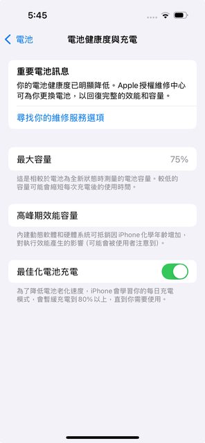 電池健康度 75%