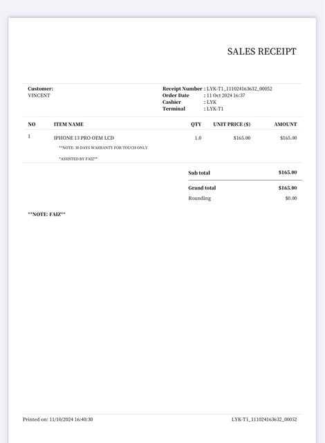 10/11 螢幕更換副廠 165新加坡幣(4000台幣)(出國時壞掉更換)