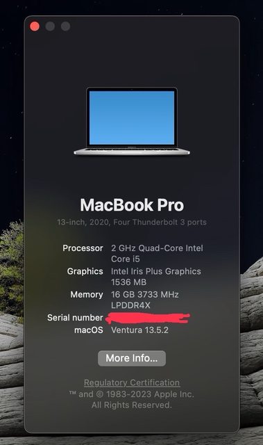 A2251 , MacBook Pro 2020, 13-inch , 4 Thunderbolt ports