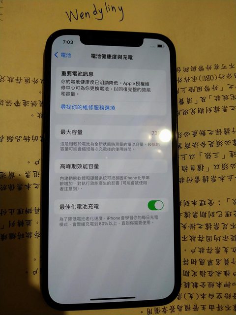 020年購入,已過保,近期家人換約購入新手機,未維修過,電池健康度73%有使用痕跡