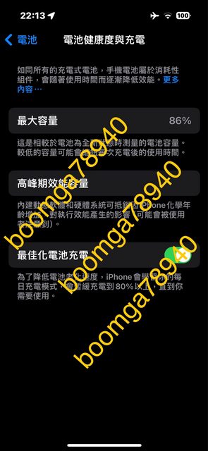 電池健康度86%