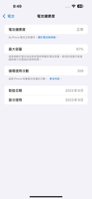 電池健康度87%