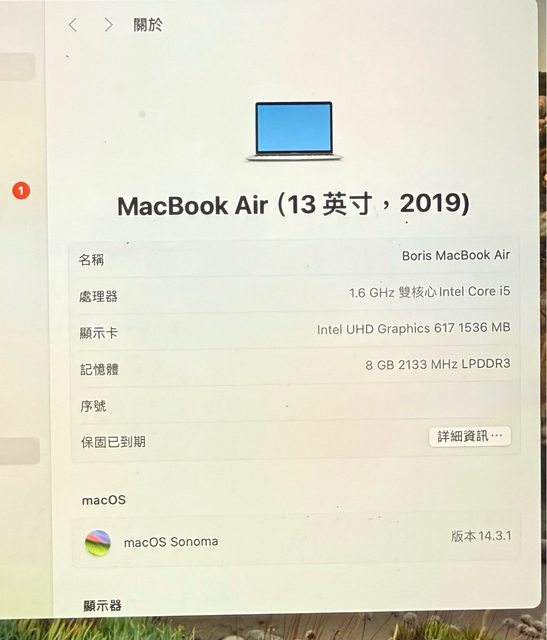 標題[販售] MacBook Air i5 8g 256g 2019