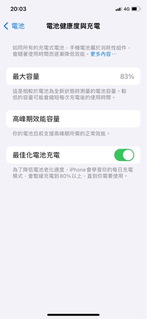 平常工作日極少使用, 電池健康度83%