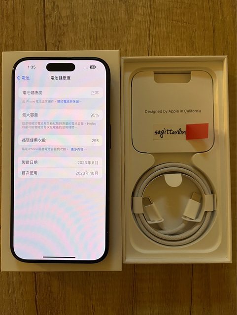 電池健康度:95%;循環次數:295(如照片)。