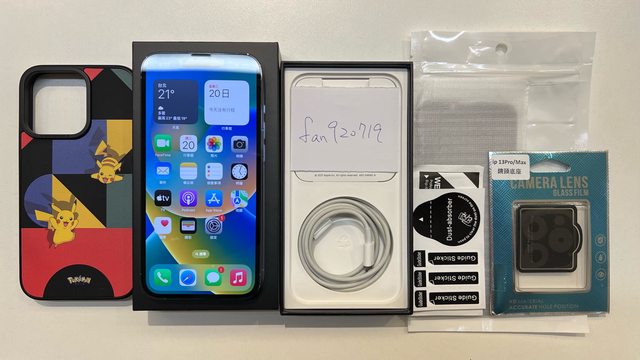 附充電線、手機殼、保護貼、鏡頭底座貼。