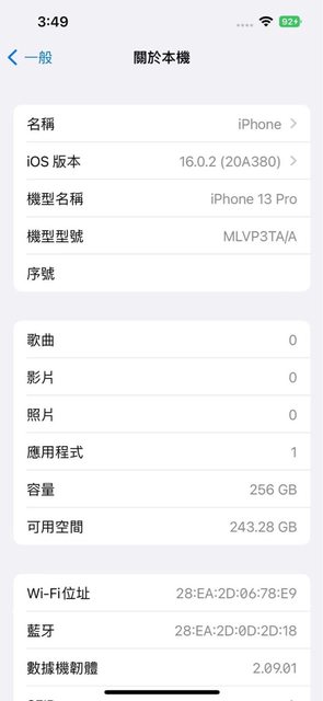 盒機序號一致,全機功能正常,電池健康度92%,正反面、四邊皆漂亮無傷。