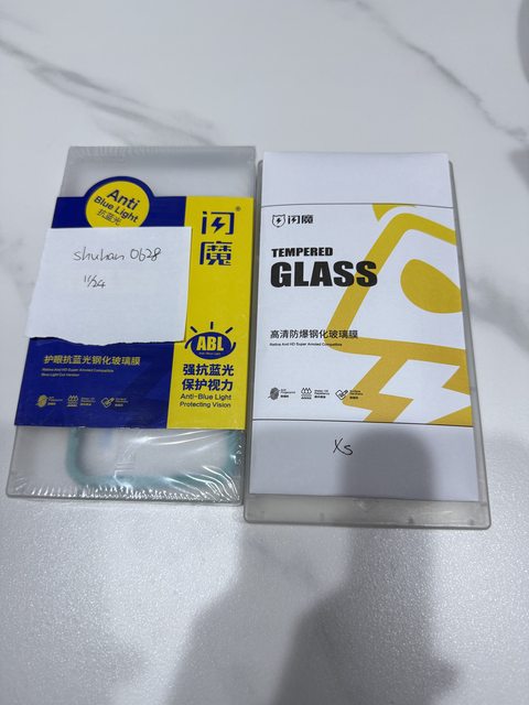 [盒裝配件] 充電線、豆腐頭、耳機(幾乎沒用)、高清保護貼、抗藍光磨沙保護貼
