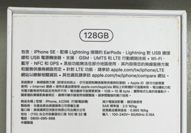 [型號] iPhone SE2 (2020) 128G 黑色