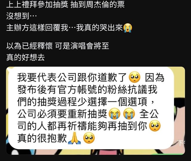 [姆咪] 我代表公司祈禱你能再次抽到周杰倫門票