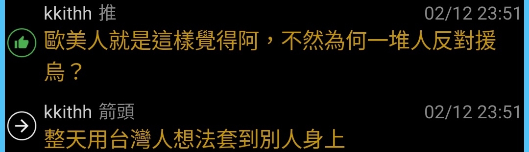 kkithh : 西歐美國等國家,根本上不當烏是自己人 02/12 23:55