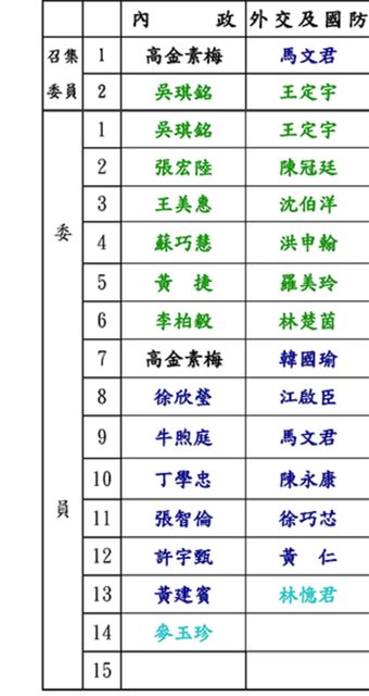 → cross980115 : 有黃珊珊 但既然不是她進國防外交 那就是當作不用 02/29 11:00