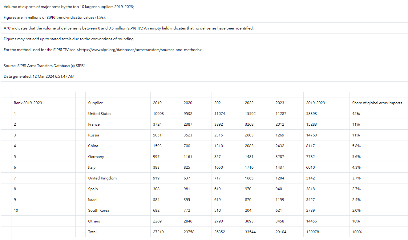 SIPRI的研究報告顯示
