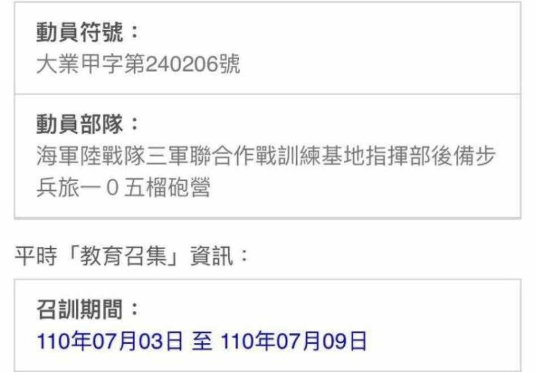 → Gdiaofuta : 動員令也平時教育召集和戰時動員召集,教育召集在2 03/20 21:15