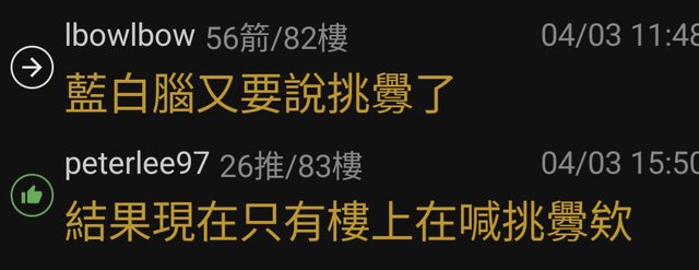 (如指稱板友為「藍白粉」、「蘇貞昌」、「某黨網軍」)