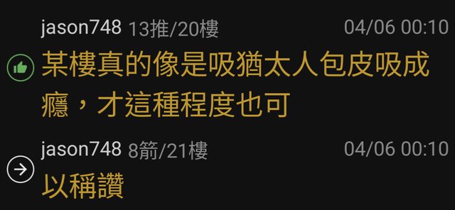 「某樓真的像是吸猶太人包皮吸成癮,才這種程度也可以稱讚」