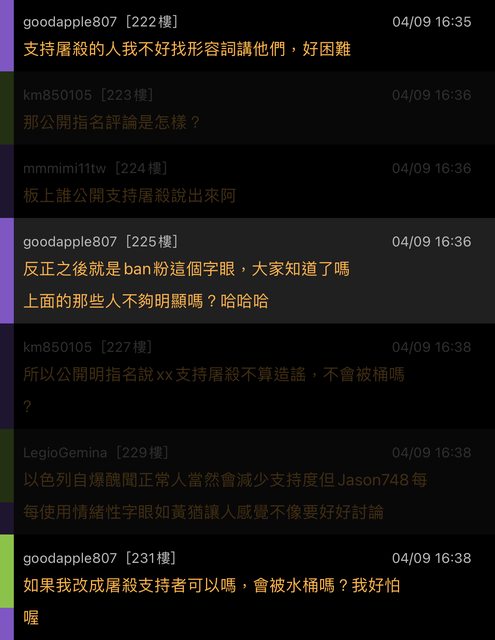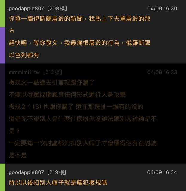 (3)一篇文章內對三名板友以上人身攻擊者,或對特定族群板友人身攻擊者,