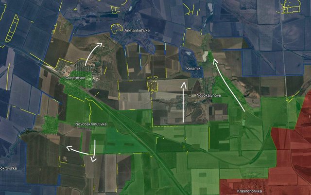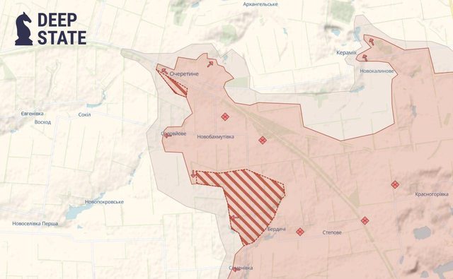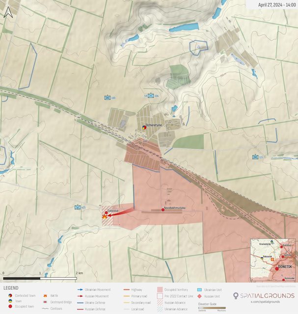 根據最新的地理定位影片,Ocheretyne 和 Novokalynove 兩個村莊可能處於俄羅斯控制之下