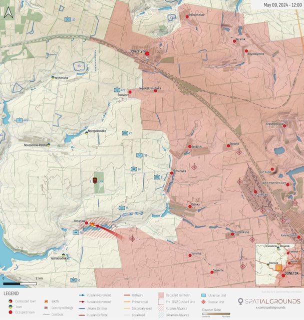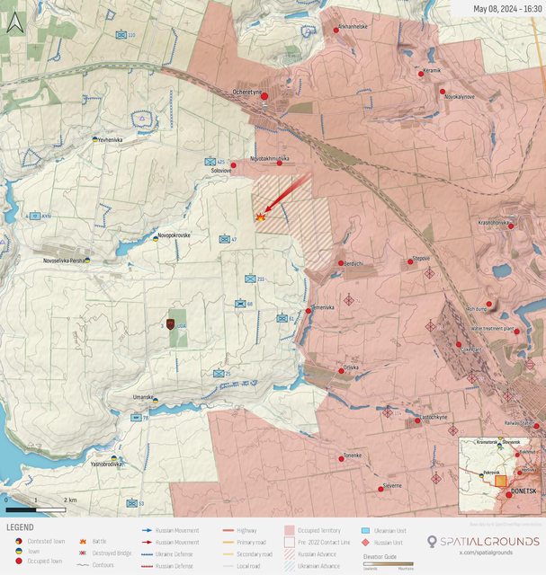 該定居點現已被佔領,烏克蘭軍隊向北/西撤退。