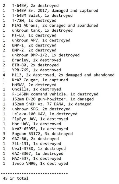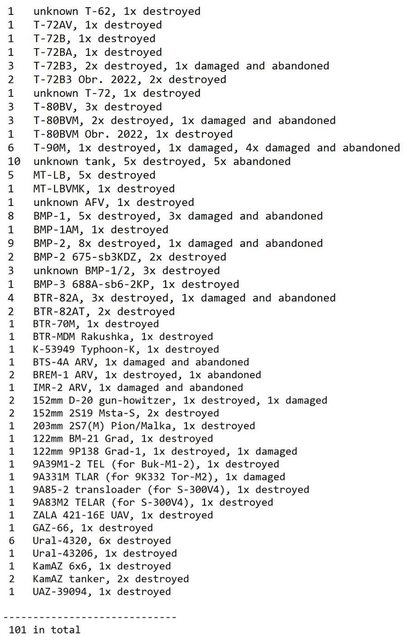 目視確認損失軍事裝備統計 2024.05.05 ~ 05.08