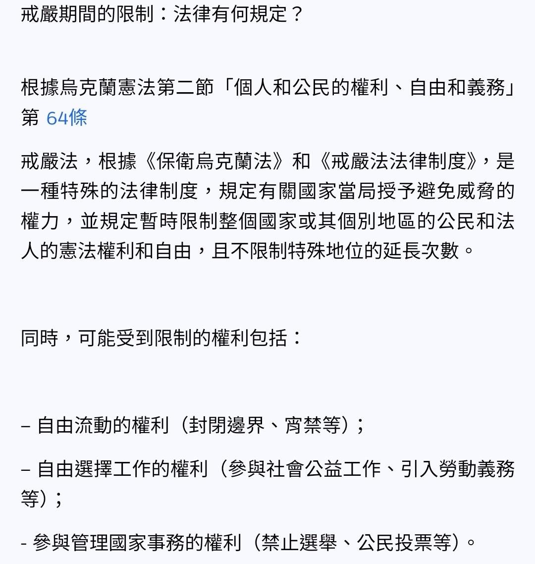 推 chentsangyi : 目前只查到英文維基的Martial law in Ukraine有提 05/15 15:03