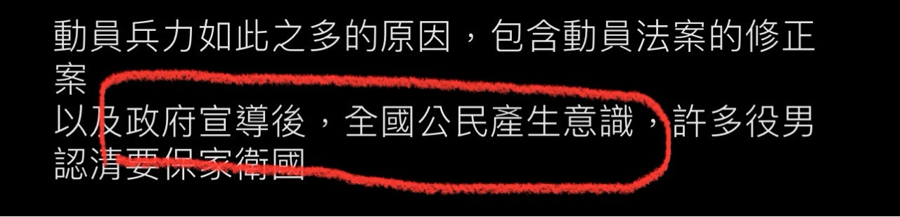 以及政府宣導後,全國公民產生意識,許多役男認清要保家衛國