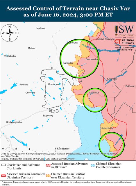 6月16日,俄羅斯軍隊繼續在Chasiv Yar方向