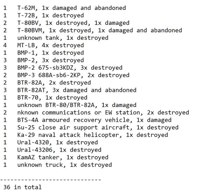 目視確認損失軍事裝備統計 2024.06.21 ~ 06.23