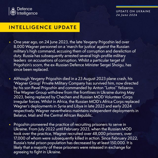 一年前,即2023 年6 月24 日,已故葉夫根尼