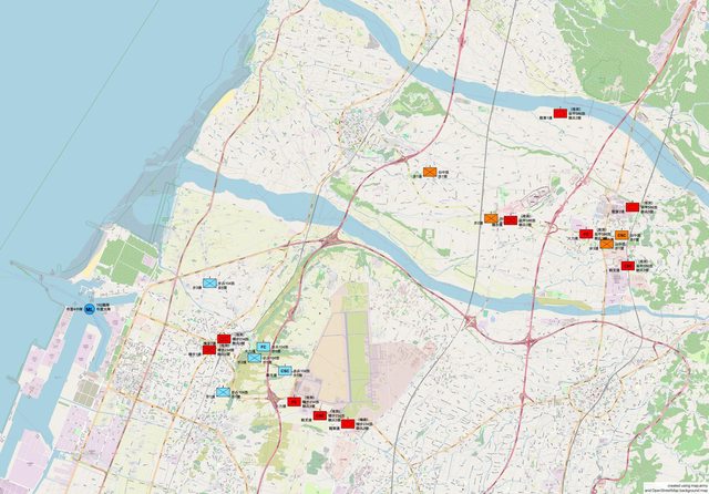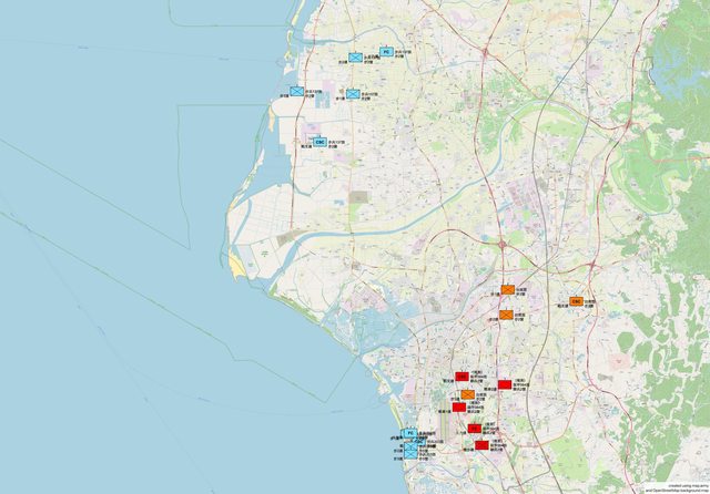 台北市、高雄市、台中市、彰化縣等。
