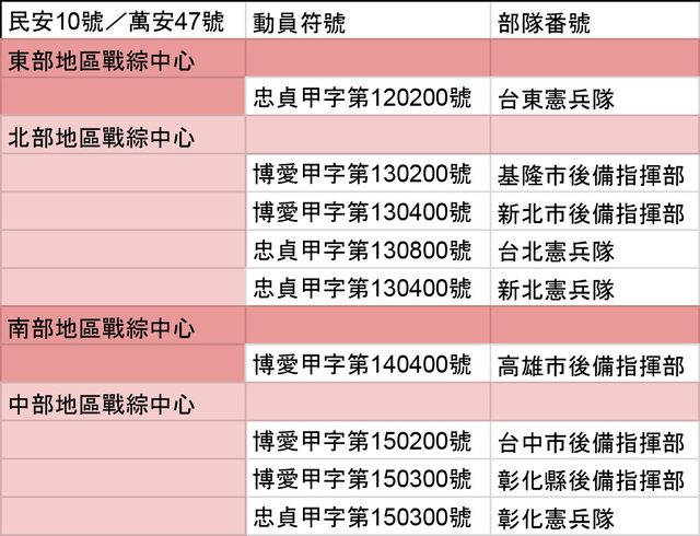 萬安、民安民防演習參演單位動員符號