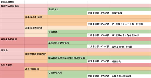漢光、同心軍事演習其他參演部隊動員符號