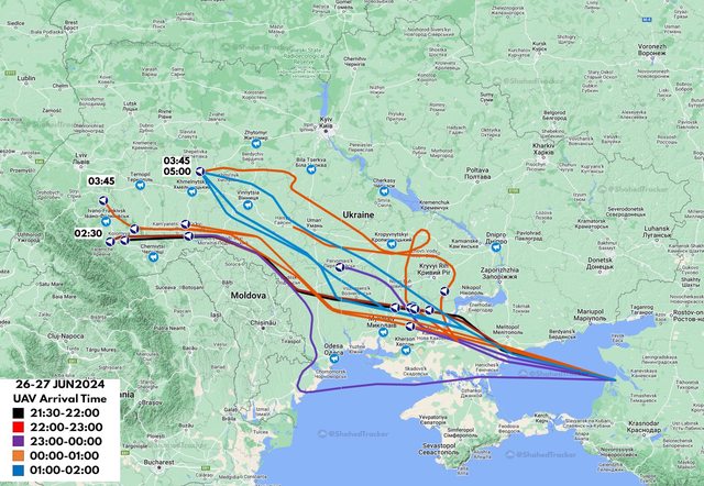 【俄羅斯 Shahed 無人機攻擊路線】