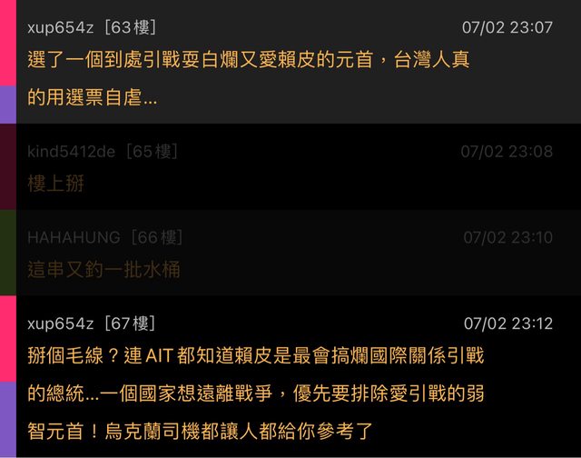 (如指稱板友為「藍白粉」、「蘇貞昌」、「某黨網軍」)