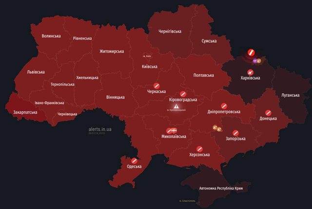 據報道,烏克蘭多個地區都有防空活動。
